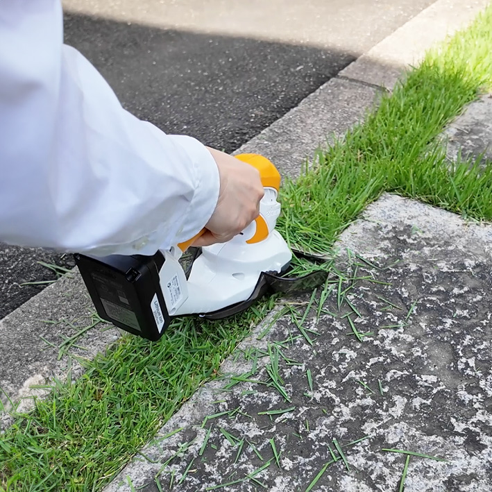 電源の場所を気にすることなく、電池パックを差すだけで芝刈りができます。また、電源コードの準備や片付けも不要で手軽に使えます。